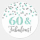 Pegatina Redonda 60 y fabuloso Confetti Turquesa Plata de Cumpleaño