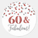 Pegatina Redonda 60 y fabuloso cumpleaños Silver Red Confetti