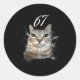 Pegatina Redonda 67 Meme Cat Howling At Moon Brainrot Funny 6 7