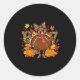 Pegatina Redonda 6 7 Thanksgiving Funny Leopard Bow Turkey Six Seve