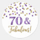 70 y fabulosa fiesta de cumpleaños favorecen a los pegatinas con confeti de oro y púrpura.
