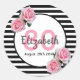 Pegatina Redonda 80 años rosas rosas rosas negras rayas blancas