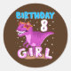 Pegatina Redonda 8 años Chica de cumpleaños Dinosaur T Rex