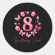 Pegatina Redonda 8th Birthday Girl Aesthetic Coquette Bow