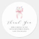 Gracias a sus invitados por venir a su fiesta de cumpleaños con este pegatina de agradecimiento personalizado. Tiene un lujoso arco de coqueta rosa acentuado con flores silvestres rosas y azules. Gracias está escrito en un precioso guión abierto. Tres líneas le permiten personalizar su apreciación. Todo el texto es editable.