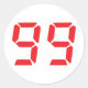 Pegatina Redonda 99 número digital del reloj de alarma roja noventa