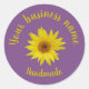 Pegatina Redonda Abeja en cla de escritura hecha a mano con girasol