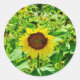Pegatina Redonda Abeja en el girasol amarillo