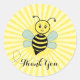 Pegatina Redonda Abeja feliz y rayos solares. Gracias.