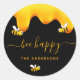Pegatina Redonda Abeja negra abejas felices bombones monograma de m