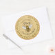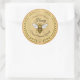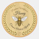 Guirnalda o guirnalda de hojas que rodean a una abeja de miel dibujando a rayas doradas en un borde dorado ámbar. Edite grabaciones personalizadas para el tipo de miel, cera de abejas, velas y otros productos de sus abejas, con texto redondo para las características del producto, apicultor o nombre de colmena profesional, y peso neto.