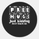 Pegatina Redonda Abrazos gratis, sólo abrazos, no me toques gracios