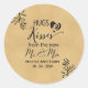 Pegatina Redonda Abrazos y besos del nuevo señor y la señora Boda