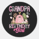Pegatina Redonda Abuelo Del Chica De Cumpleaños Granja Vaca Rosa Pr