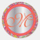 Pegatina Redonda Acentos Plateados Peacock Paisley Tangerine Hot Pi