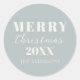 Dé un toque moderno a sus regalos y paquetes de vacaciones con este pegatina de la colección de guiones navideños modernos. Con un suave fondo azul costero con tipografía minimalista de marfil crema, el diseño lee Feliz Navidad con espacios de personalizable para el año y un nombre. Estos pegatinas festivos son perfectos para sellar sobres, decorar favores de fiesta, empaquetar productos horneados o agregar un detalle pulido a los regalos del vecino y a los regalos de temporada. Con su diseño sencillo pero audaz, este pegatina se empareja con las tarjetas, los adornos, las etiquetas de regalo y las etiquetas de dirección de retorno en la colección de guiones navideños modernos. Una manera versátil de elevar las celebraciones navideñas con un estilo moderno y minimalista.
