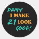 Pegatina Redonda Actitud de cumpleaños 21 sarcástica