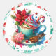 Pegatina Redonda Acuarela Cacao Caliente, Cane Candy Cinnamon Stick