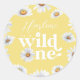 Pegatina Redonda Acuarela Daisy Wild One Chica primer cumpleaños