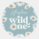 Pegatina Redonda Acuarela Daisy Wild One Chica Primer Cumpleaños Cl