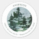 Pegatina Redonda Acuarela de bosque de pinos