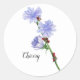 Hermoso ilustracion de acuarela de estilo botánico moderno de flores de achicoria azul encantadoras (también conocido como dandelion azul) sobre el texto de estilo de tallo y guión sobre fondo blanco
