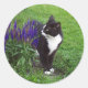 Pegatina Redonda Acuarela de gato de Tuxedo