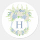Pegatina Redonda Acuarela Floral Cresta de Hortensia Azul y Blanco