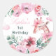 Pegatina Redonda Acuarela Floral Giraffe Ribbon Chica Cumpleaños