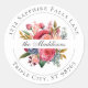 Hermosos y vibrantes flores rosadas y melocotones acentúan este "Vibrante Pegatina redondo floral clásico". Este diseño, con sus vibrantes y delicadas tintas, sus amarillos suaves y sus toques azules, tiene una esencia de elegancia atemporal para su gran día.