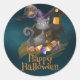 Pegatina Redonda Acuarela Gato negro con caramelos, Halloween