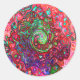 Pegatina Redonda Acuarela Groovy Rojo Resumen Remoto Líquido Swirl