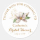 Acuarela Magnolia Purple Floral Bridal Shower Gracias Pegatinas cuenta con elegantes flores de magnolia acuarelas en suave lavanda y morado con hojas verdes sobre un fondo blanco acentuado con oro con tu ducha nupcial Gracias. Diseñado por Evco Studio www.zazzle.com/store/evcostudio
