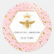 Pegatina Redonda acuarela rosa rosa purpurina de la abeja reina