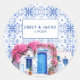 Pegatina Redonda Acuarela Santorini Grecia azul boda y blanco
