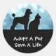 Adoptar un pegatina Mascota con silueta de perro y gato, fondo azul fresco y texto que se puede personalizar con cualquier mensaje. Perfecto como pegatinas o etiquetas para un rescate mascota, centro de adopción de mascotas, refugio animal o libra de perro.