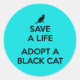 Salvemos una vida adoptando una huella de gato negro con un vibrante fondo azul acuático.