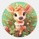 Pegatina Redonda Adorable ciervo Personalizado en Navidades festivo