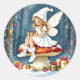 Pegatina Redonda Adorable Little Christmas Fairy on Mushroom