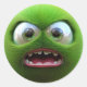 Un adorable y difuso personaje de bola verde con expresión de ira