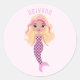 Adorable sirena personalizado con pelo largo rubio y rosa, ojos azules grandes, y una sirena rosa escala cola. Personaliza con un nombre.