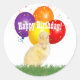 Pegatina Redonda Adorables globos amarillos de cumpleaños felices