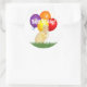 Selle el correo para una fiesta de cumpleaños o cambie el mensaje para otras ideas fiestas con este adorable pegatina. El diseño de pegatinas redondos de fotografía y arte digital mezclado presenta patios amarillos en la hierba con cuatro globos coloridos entre ellos y encima, con algunos confeti flotando alrededor. Personalice el mensaje en el campo plantilla o haga clic en personalizar para seleccionar un estilo de fuente, tamaño y color que prefiera.