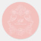 Pegatina Redonda Adorno de cresta de monograma Rosa Rubor Boda