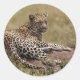 Pegatina Redonda África, Tanzania, Serengeti. Leopardo
