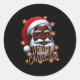 Pegatina Redonda African American Santa Christmas Pajama Black X-ma