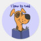 El perro de dibujos animados que lee un libro dice que me encanta leer. En las noticias recientemente había una historia acerca de una biblioteca que tenía perros voluntarios que venían y ayudaban a los niños a leer. Los niños se sentaban con un perro en sus lapsos y leían a los perros. Ayudó a los niños a aprender a leer y a los perros les encantó. Diversión para todos. Gran idea de regalo.