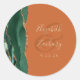 Pegatina Redonda Agate Geode Script Emerald Green Gold Rust Boda