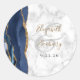 Pegatina Redonda Agate Navy Blue Gold Script Marble Boda