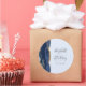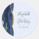 Pegatina Redonda Agate Script Navy Pale Blue Gold Wedding